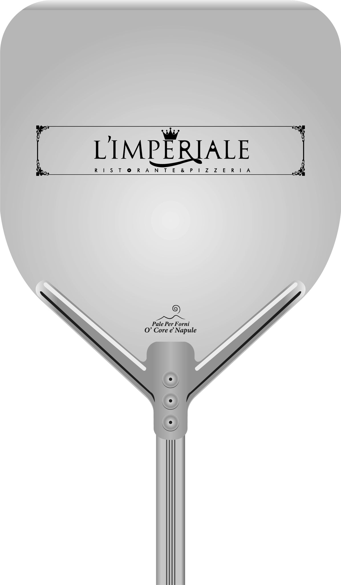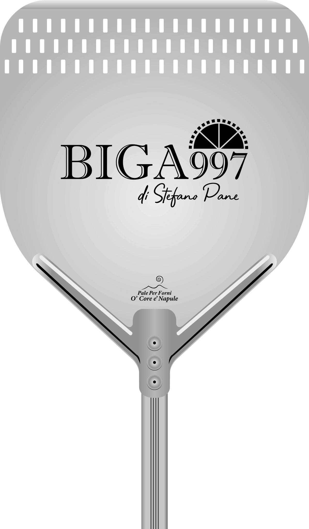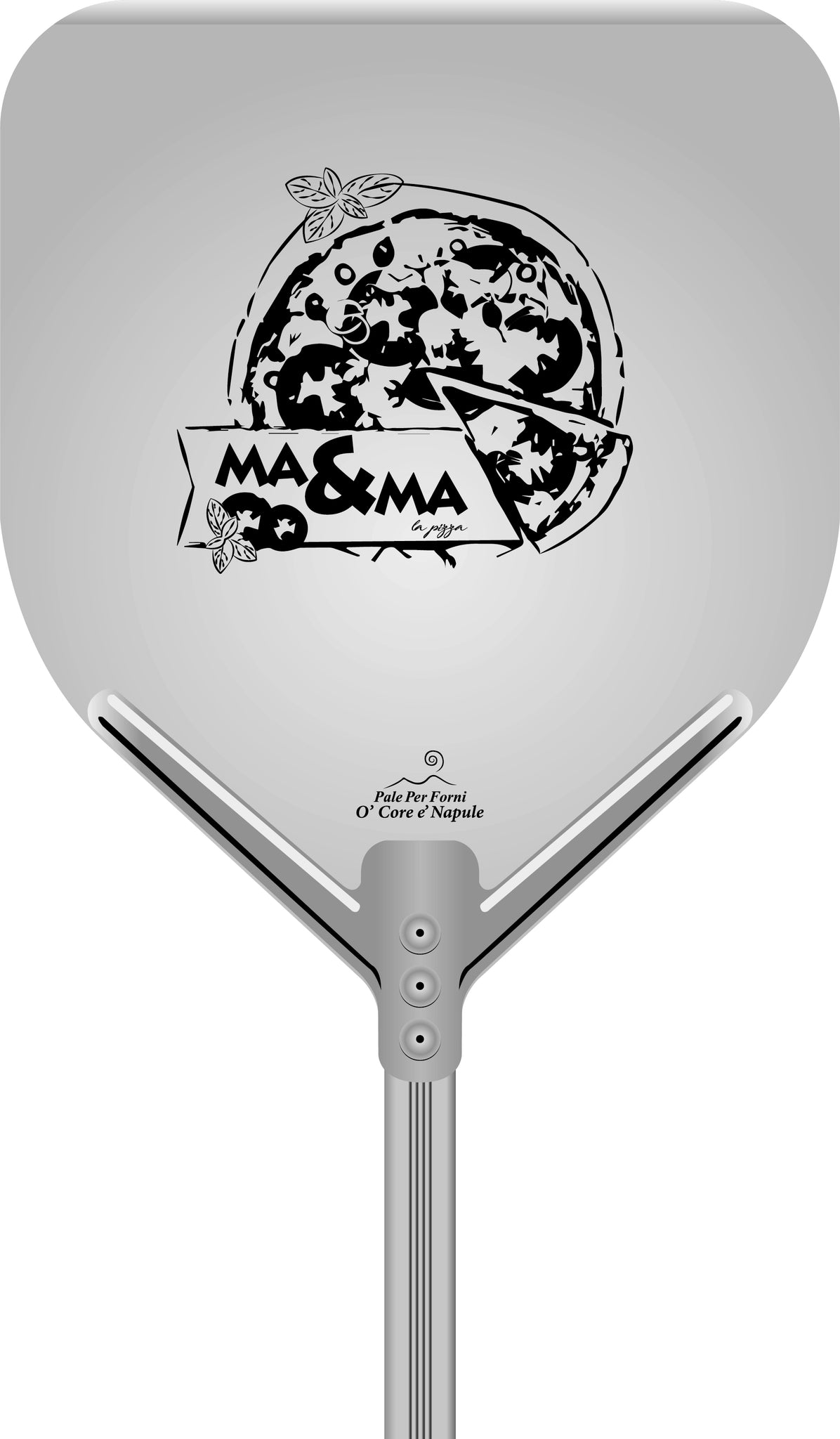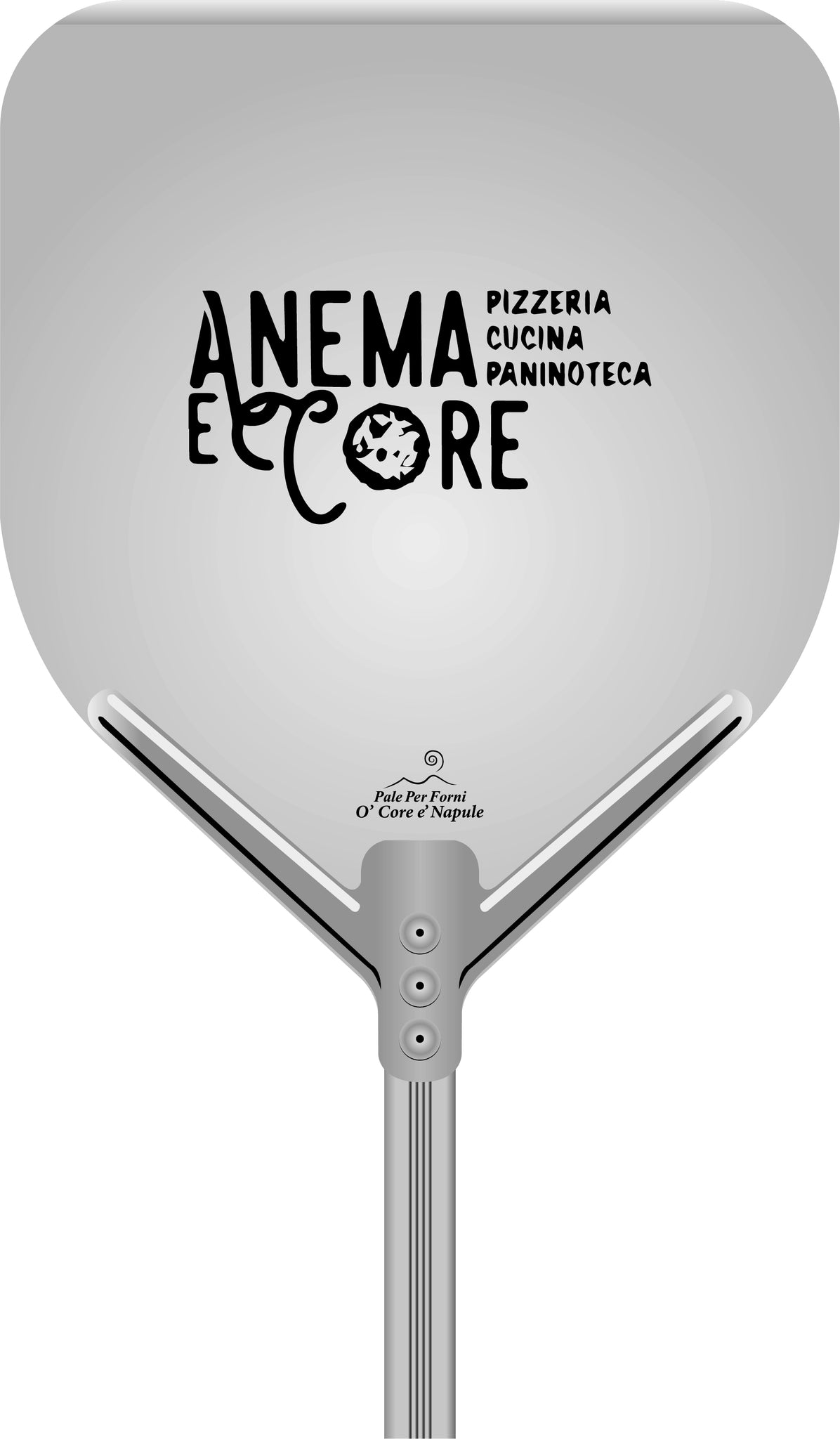 Dank des Aluminiumgriffs liegt die Pizzaschaufel O' Core è Napule perfekt in der Hand! Sehr einfach zu bedienen, sodass Sie die Pizza problemlos in den Ofen schieben (und dann herausnehmen) können! Schaufelgröße: 33x33cm