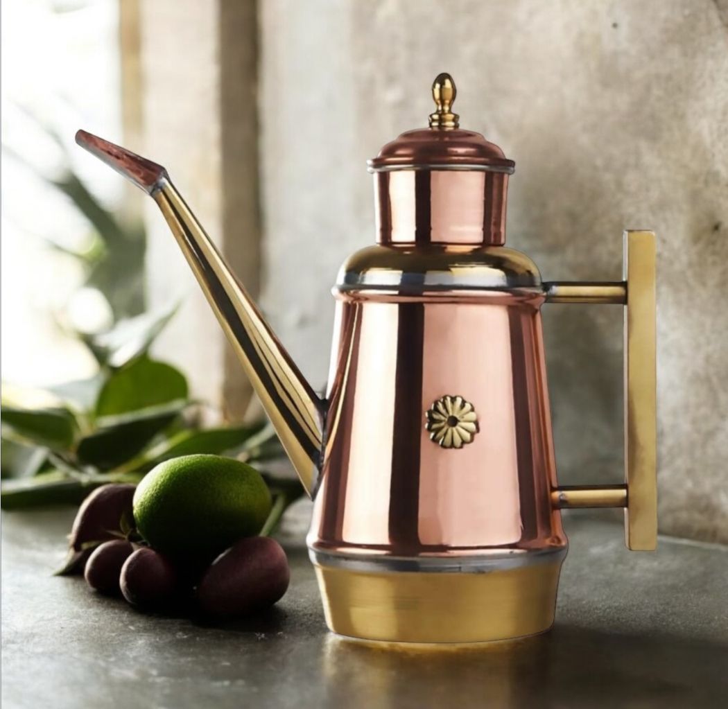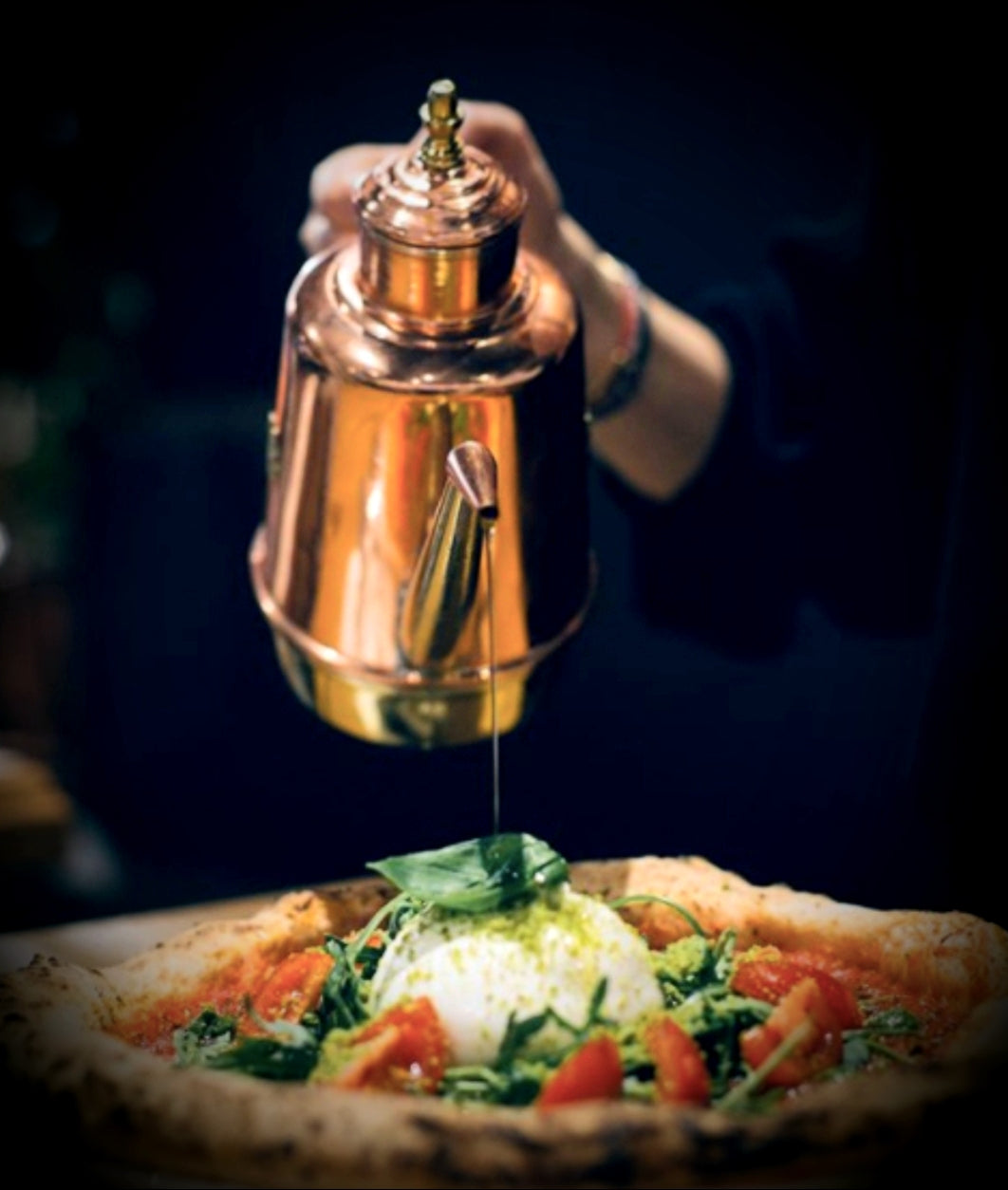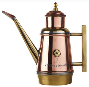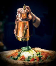 L' oliera in rame affinata, è ideale per condire le pietanze a tavola o durante la preparazione di una buona pizza e non solo, ma anche tante altre pietanze.