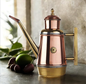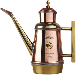 garantisce un'impugnatura comoda e salda, per dosare al meglio la giusta quantita' di olio da versare. la struttura dell'OLIERA protegge l'olio dall'esposizione diretta alla luce e il corpo in rame evita che se ne alterano le proprietà organolettiche. Ideale sia in tavola che in cucina per la realizzazione, ad esempio, di pizze e focacce.